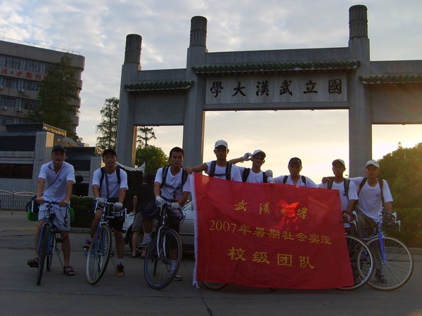 每次翻開校內上那個名為《踩著單車去看海》的相冊時,腦??倳ⅠR浮現(xiàn)出我記憶深處那幾張年輕而又有些稚氣的臉孔。東子、梁子、小權、凱子、小超。那一年我20歲,大二。當我第一次聽到他們幾個要從武漢騎車去上海時,首先覺得甚是不可思議,接著從心底佩服這幫家伙。但,那時候的我還未曾想過自己也會成為這個團隊中的一員。
