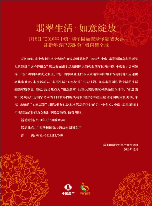 中房·翡翠園如意翡翠頒獎(jiǎng)大典2011年1月8日盛裝開(kāi)啟